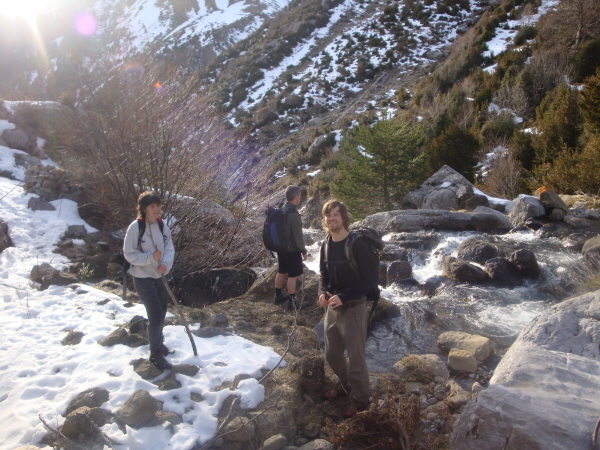 As we approached the head of the valley the scenery got more rugged and impressive with steep cliffs surrounding a rocky cirque. We reached snow about 4o minutes from the end of the valley. There is an Ibon (mountain tarn) at the head of the valley but time was running a bit tight with the short winter days and we had to turn back before we reached it.